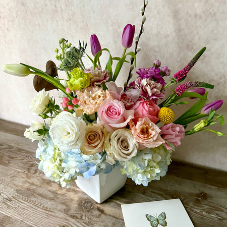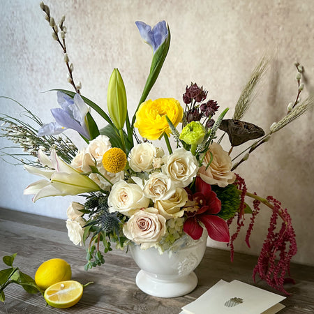 Let the florist create a beautiful flower arrangement with seasonal, locally sourced flowers.