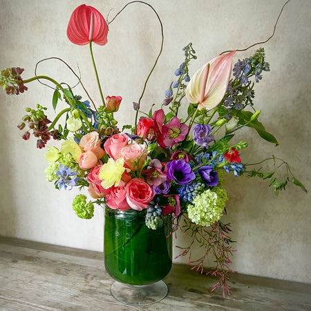 After many years of being a commercial illustrator, and painter at big firms in the city, the owner and florist, Kathy, fell in love with the colorful array of floral designs after moving down to the South Orange County coast.